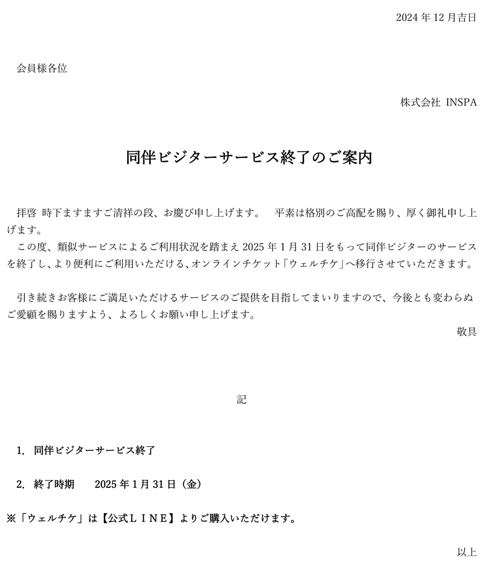 同伴ビジターサービス終了のご案内