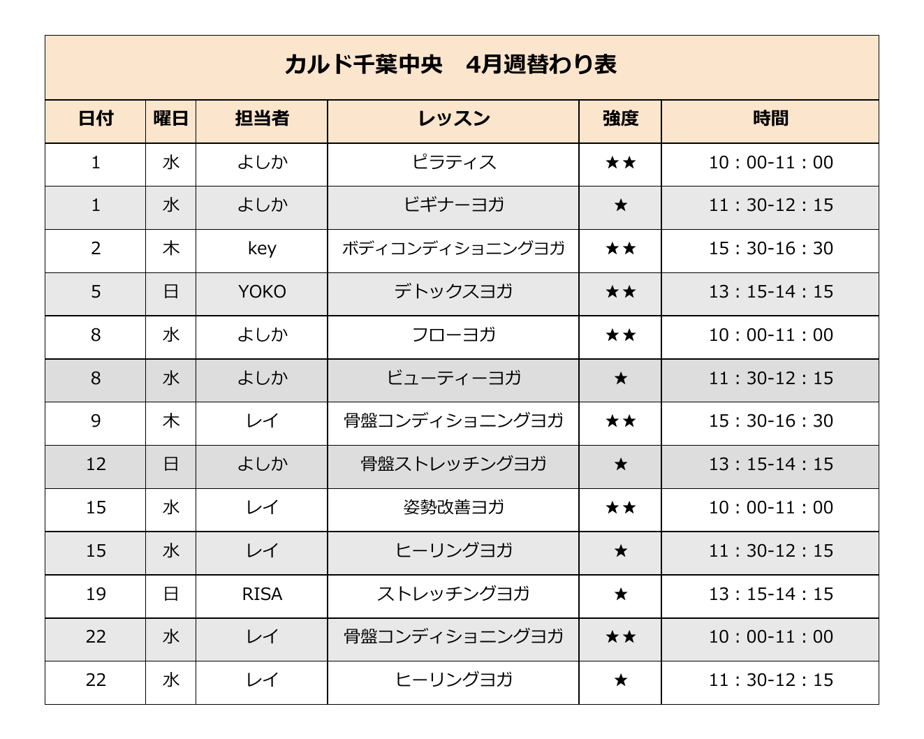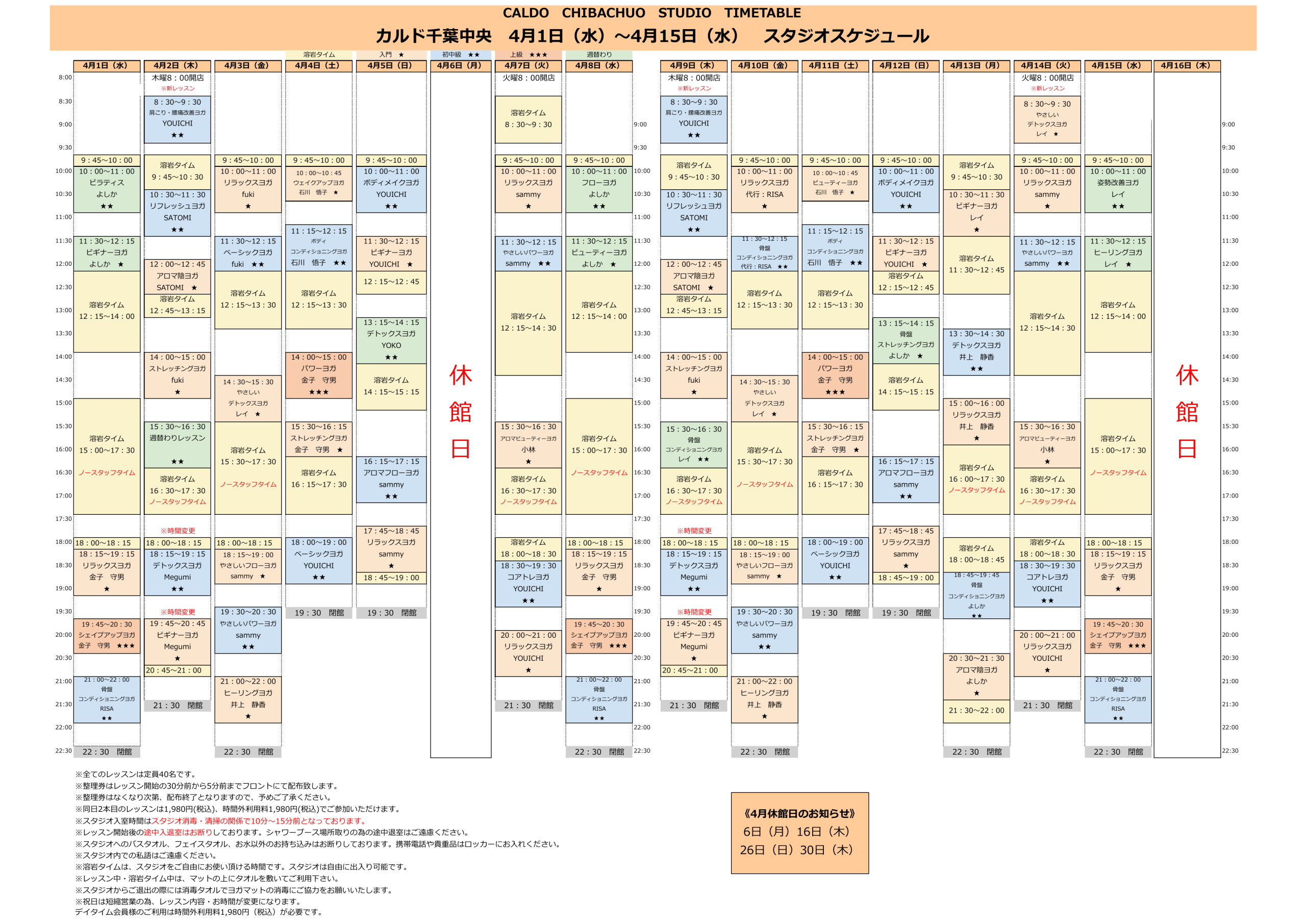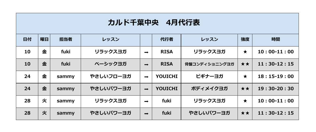 【4月代行・週替わりスケジュール】