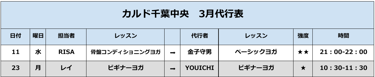 【3月代行・週替わりスケジュール】