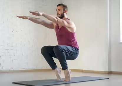 つま先立ちスクワットは、下半身全体の引き締めに効果的です。