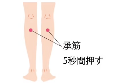 ふくらはぎにあるツボ・承筋(しょうきん)を押して、ハリを解消しましょう。