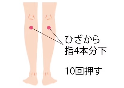 最後に膝下から指四本分下にある足三里(あしさんり)を押してみましょう。