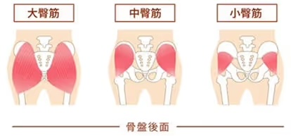 お尻の筋肉を大きく3つに分けると、大臀筋・中臀筋・小臀筋の3つに分けられます。