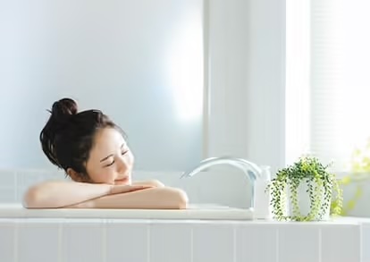 入浴中、入浴後の身体が温まっている状態でマッサージしましょう。先に常温のお水または白湯を1杯飲むとより良いでしょう。