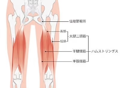 太ももの後面にある骨盤からひざ裏まで伸びている筋肉で、「大腿二頭筋」「半膜様筋」「半腱様筋」の3つの筋肉のことを総称して呼びます。