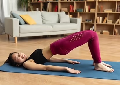 下腹部にも力を入れ、腰を痛めないように注意しましょう。大臀筋を意識して取り組んでいきましょう。足の位置をお尻に近づけると更に強度が上がります。