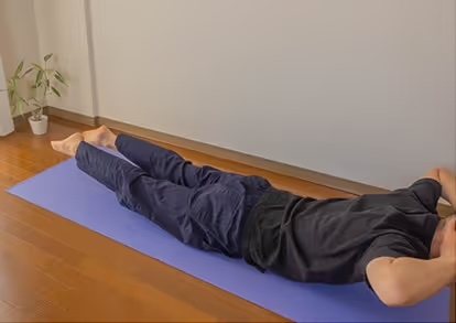 3. 頭の後ろで手を組み、肩甲骨を床から少し浮かせる