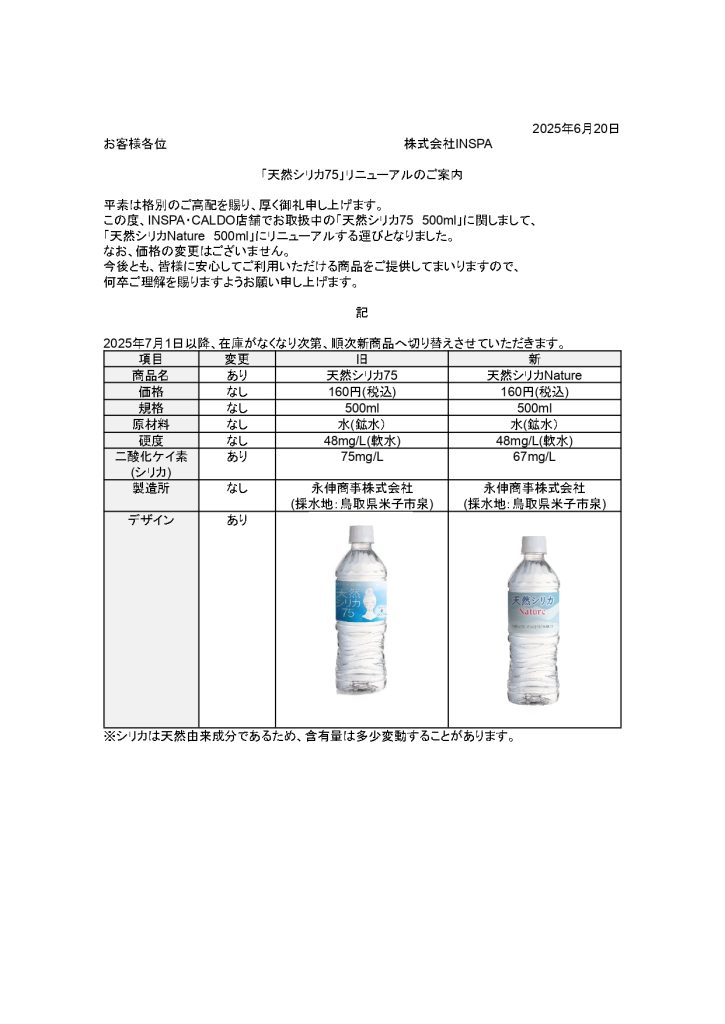 「天然シリカ75」を順次新商品「天然シリカNature」へ切り替えさせていただきます。
