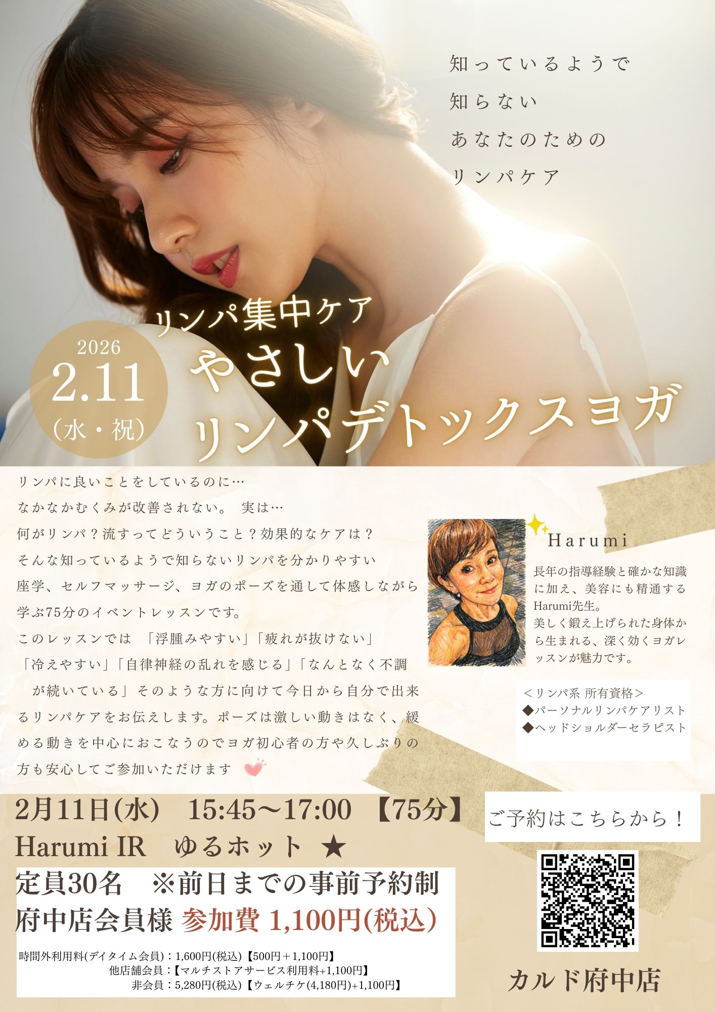 デコルテや脚の付け根、ひざ裏といったリンパの溜まりやすい部位にアプローチしながら、ヨガのポーズによって気持ち良く滞りを解消し、不要なものが流れやすい状態へと導きます。