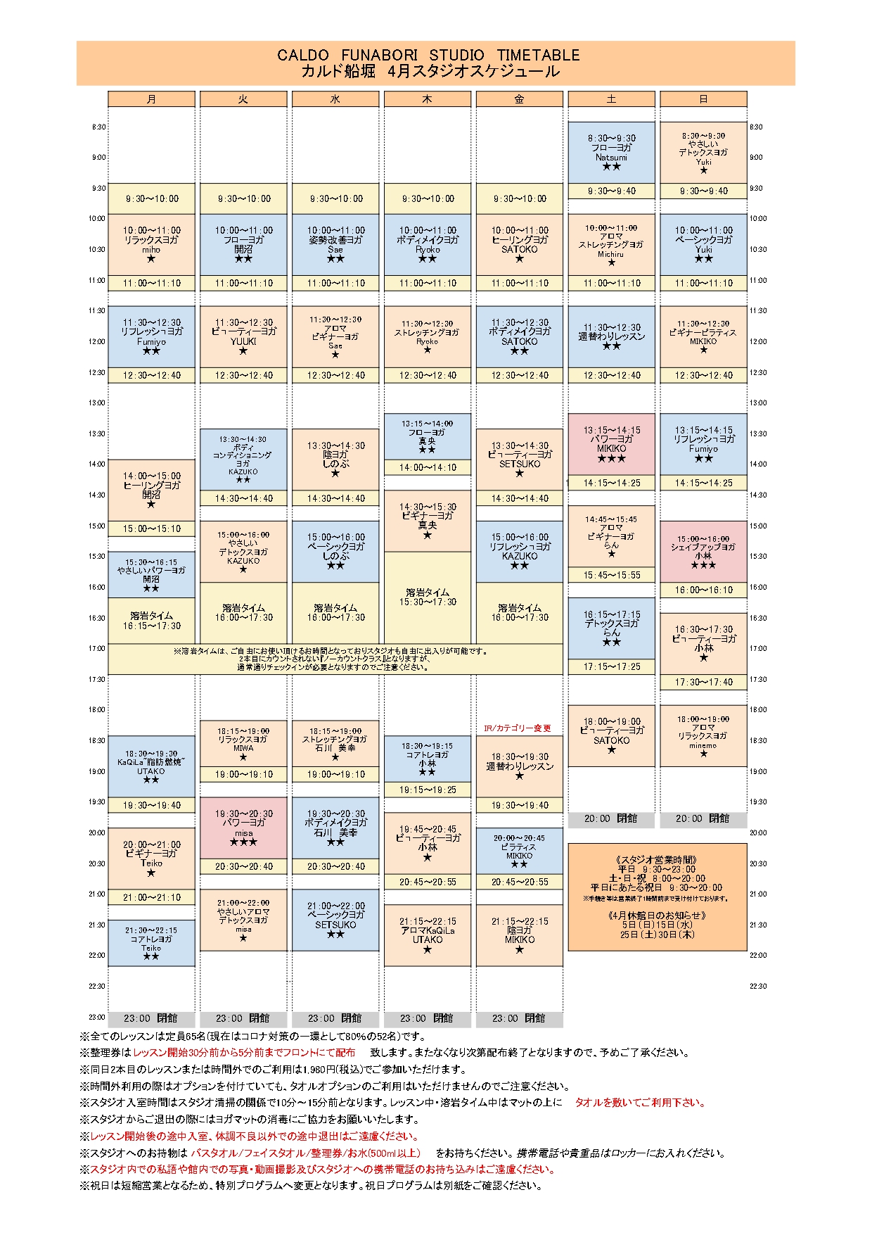 スタジオスケジュール