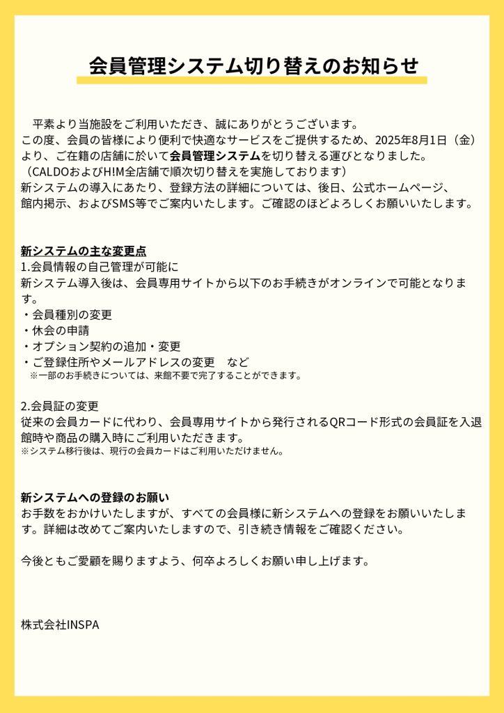 会員管理システム切り替えのお知らせ