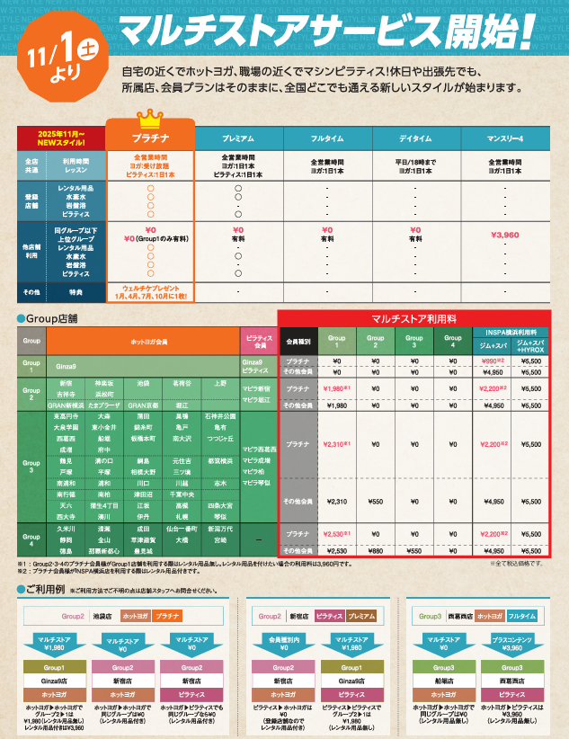 ※マンスリー4・7の方は、都度3,960円お支払い頂くと、他店舗利用が可能です。