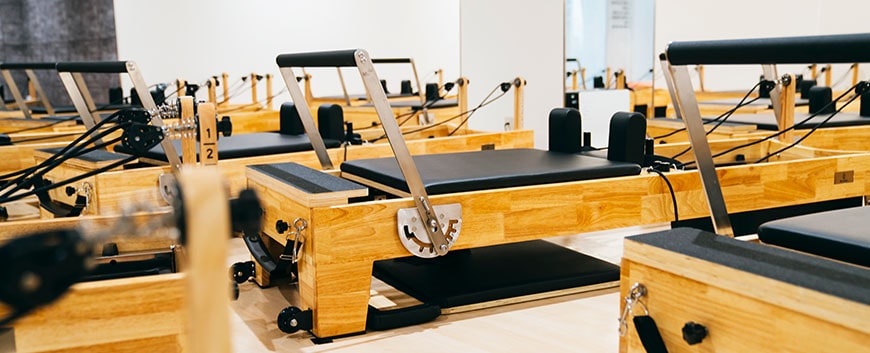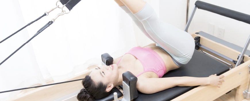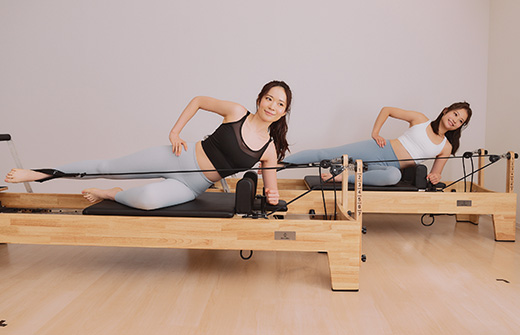 初めての方向け入門レッスン。ピラティス専用マシン「リフォーマー」の各パーツの名称や、ピラティスの基本的な呼吸・姿勢から丁寧に行います。