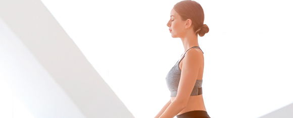 ヨガは腹式呼吸を基本に行います。鼻から息を吐いてお腹をへこませ、吸う息ではお腹をふくらませていきます。副交感神経が優位になることで瞑想の状態を作り、リラックスやストレス解消の効果を高めていきます。