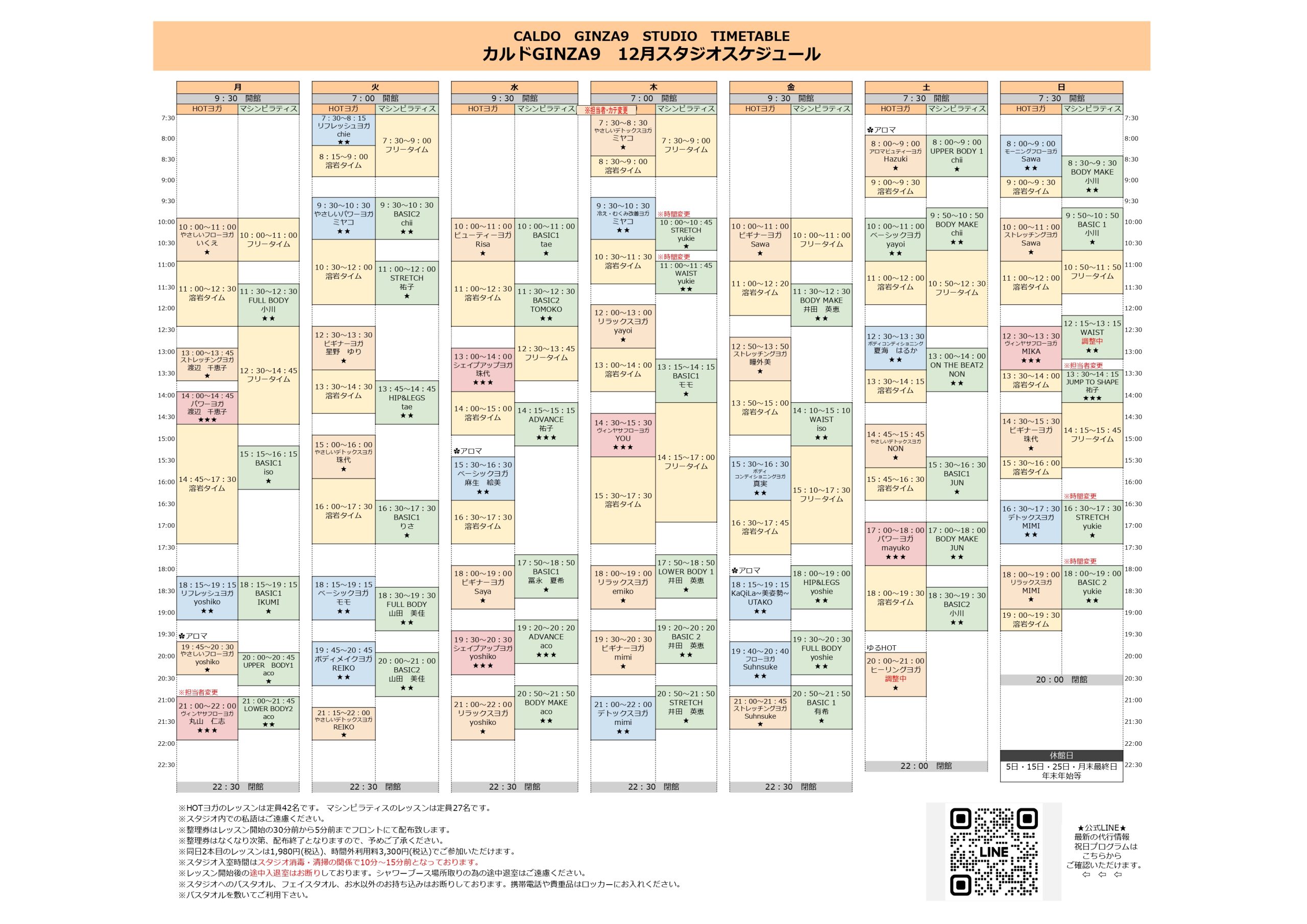 | プラチナ全店利用可能 | 31,900円 | 全営業時間利用可能 マシンピラティス:受け放題、ホットヨガ:受け放題 ※マルチストア利用時も同じ(マシンピラティスの受け放題は ginza9のみ) タオルセット・ウェア上下・水素水・ピラティス用靴下・ジム用シューズ・ウェルチケ1枚 ※1マルチストア利用時にもレンタル付き |
