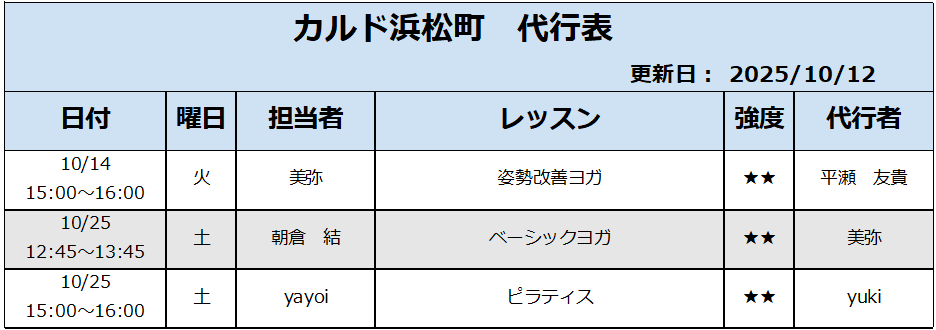 10月の代行 ※10/12更新