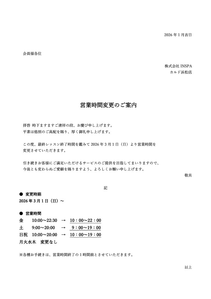 3月~ 営業時間について