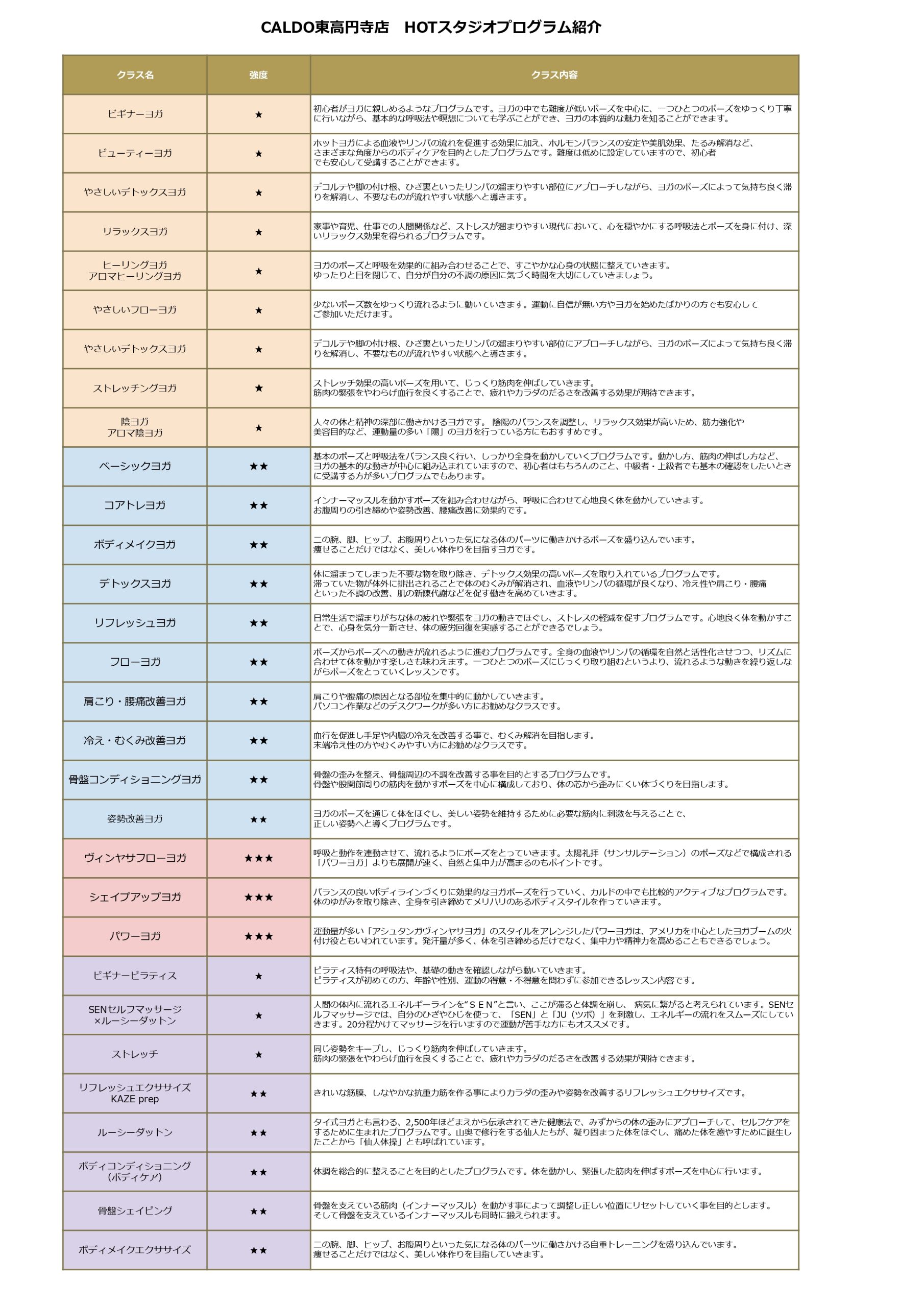 バランスの良いボディライン作り効果的なヨガのポーズを行っていく、カルドの中でも比較的アクティブなプログラムです。体のゆがみを取り除き全身を引き締めてメリハリのあるボディスタイルを作っていきます。