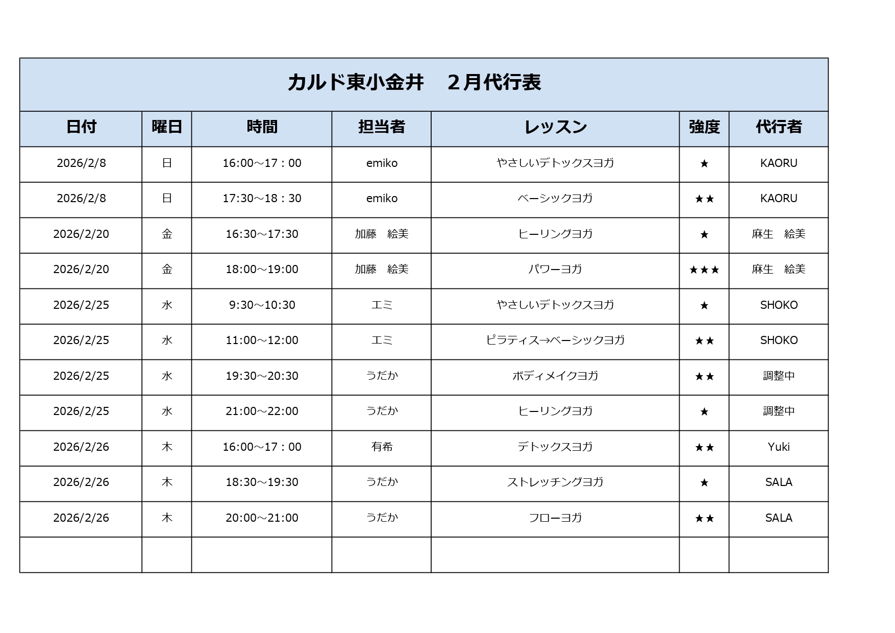 ※週によって強度が変動します。【第一、第三、第五➡奇数週=★】【第二、第四、➡偶数週=★★】 〚やさしいデトックスヨガ〛=デコルテや脚の付け根、ひざ裏といったリンパの溜まりやすい部位にアプローチしながら、ヨガのポーズによって気持ちよく滞りを解消し、不要なものが流れやすい状態へと導きます。 〚陰ヨガ〛=人々の体と精神の深部に働きかけるヨガです。陰陽のバランスを調整し、リラックス効果が高い為筋力強化や美容目的など、運動量の多い「陽」のヨガを行っている方にもおすすめです!