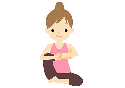 座った状態から片脚を両腕で抱えるポーズです。お尻が強く伸び、股関節を柔軟にします。