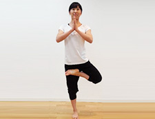 「鷲」のポーズは片足立ちで行うため、足首やふくらはぎ、肩や背中などのストレッチ効果が高く、全身のこりの解消につながるポーズです。