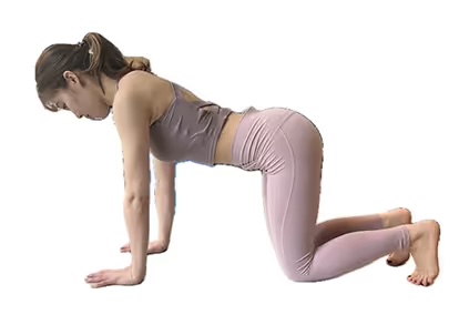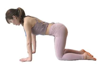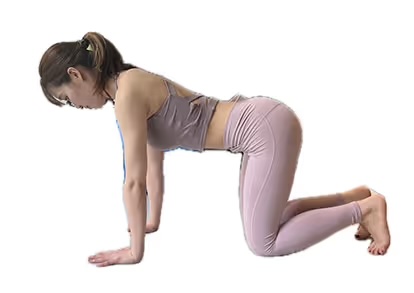 1. 四つん這いの状態になり、肩の下に手首・股関節の下に膝がくるようにします。つま先は立てずに寝かせます。