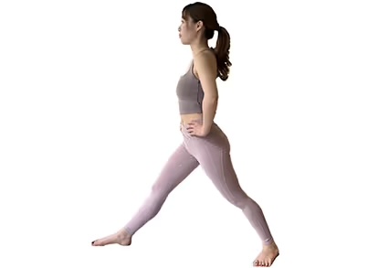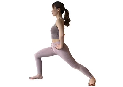 1. 右足を前方に曲げ、左足はまっすぐ後ろに伸ばす