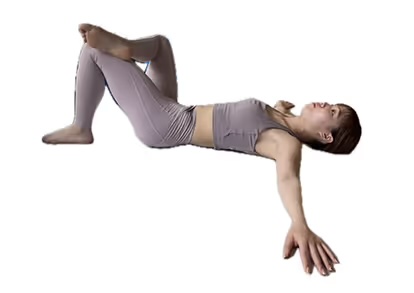 1. 仰向けになり、両膝を揃えた状態で膝を立てます。両手は身体の横に伸ばします。