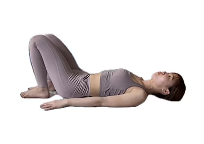 1. 仰向けで横になり、足を腰幅に開いて両膝を立てます。かかとはできるだけお尻の近くに置きます。