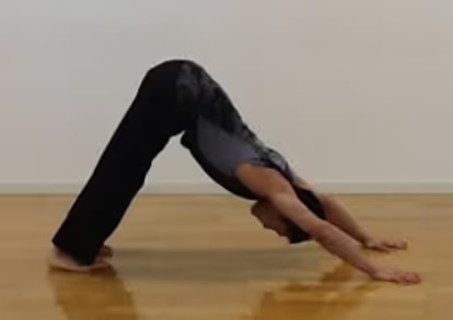 8. 息を吐きながら足の裏を床につけ、ダウンドッグのポーズに戻します