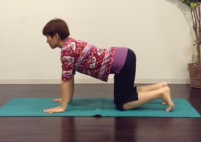 1. 両手を肩幅に開いて四つん這いになります
