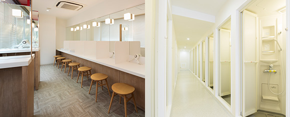 レッスン後は、シャワールームやパウダールームでリフレッシュ。