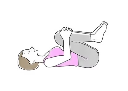 仰向けになり、両手で膝を抱え胸に引き寄せるポーズです。 膝を抱えることで緊張しやすい腰背中が丸まりストレッチされます。膝を引き寄せることで太ももが内臓をマッサージし内臓機能向上効果も期待出来ます。 効果を高めたい場合は頭を持ち上げ額を膝を近づけるようにしてみましょう。