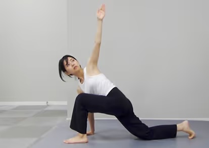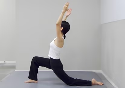 足を前後に大きく広げて行うポーズですので、股関節のストレッチが深くかかり、柔軟性アップが期待できます。股関節の柔軟性に不安がある方も、ほぐれている感覚や、伸びている感覚を、少しずつですが実感しやすいポーズです。