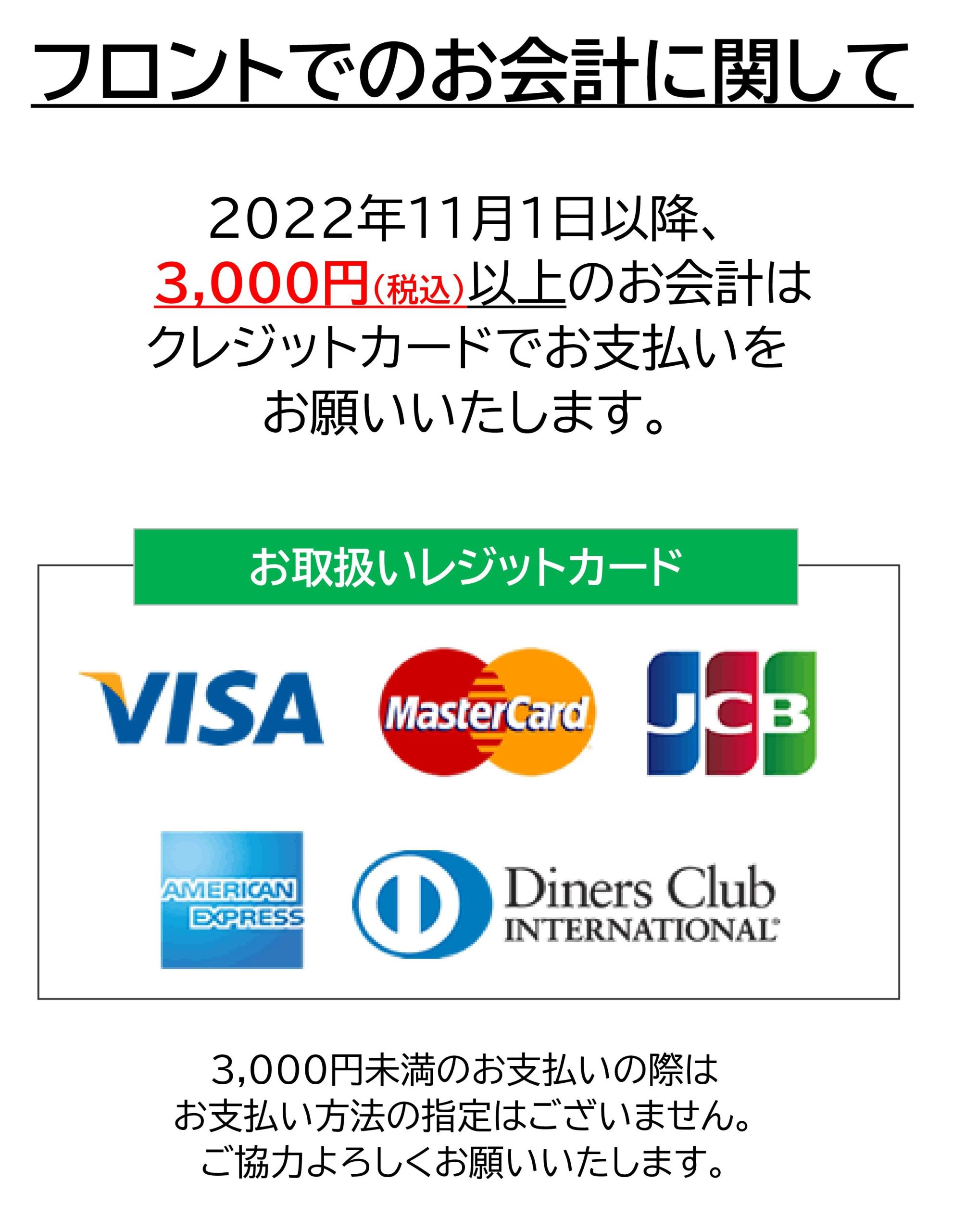 フロントでのお会計に関して、下記の通りご案内申し上げます。