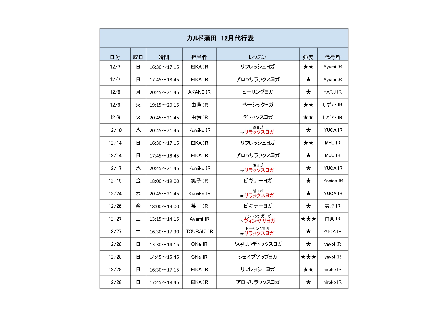 リフレッシュヨガ