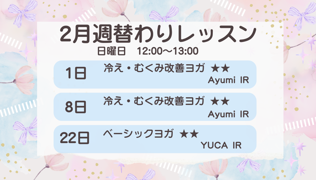 ヨガのポーズと呼吸を効果的に組み合わせる事で、すこやかな心身の状態に整えていきましょう。ゆったりと目を閉じて、自分が自分の不調の原因に気づく時間を大切にしましょう。