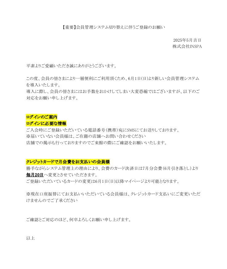 【重要】会員管理システム切り替えに伴うご登録のお願い