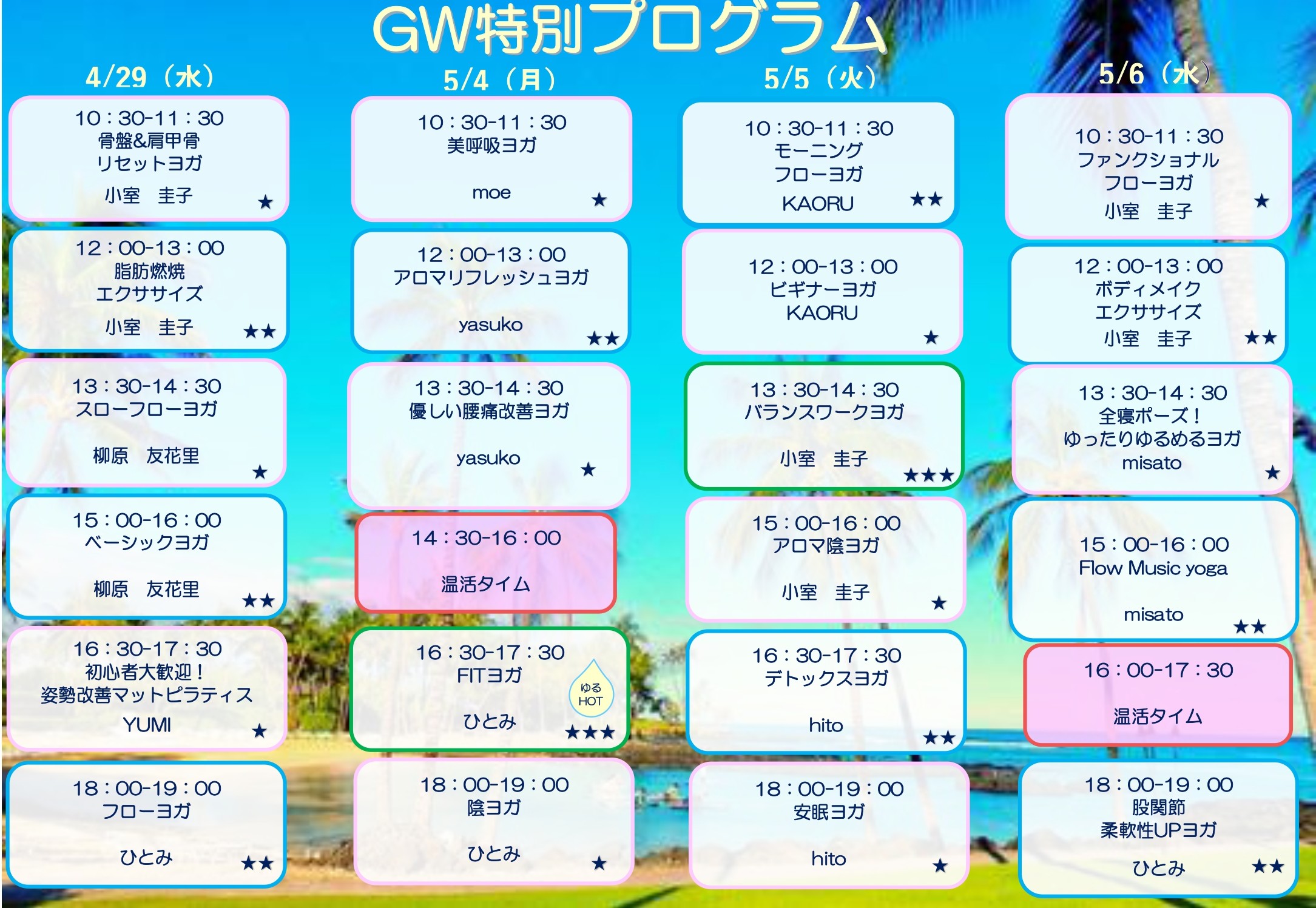 ホットヨガによる血液やリンパの流れを促進する効果に加え、ホルモンバランスの安定や美肌効果、たるみ解消など、さまざまな角度からのボディケアを目的としたプログラムです。難度は低めに設定していますので、初心者でも安心して受講することが出来ます。