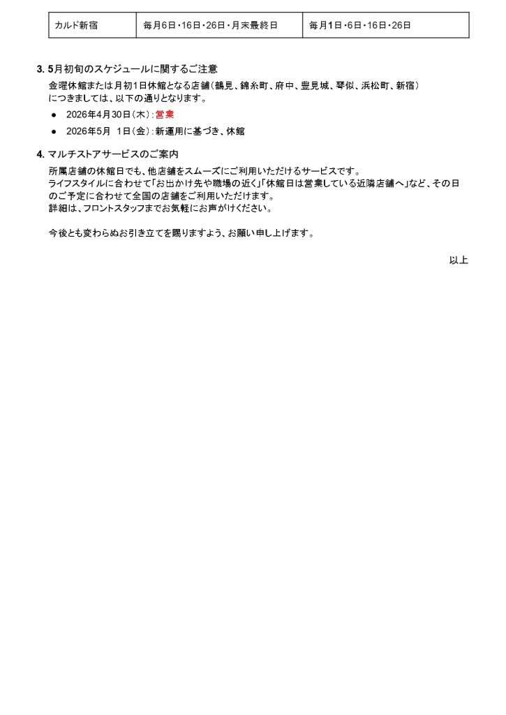 休館日変更に関するご案内