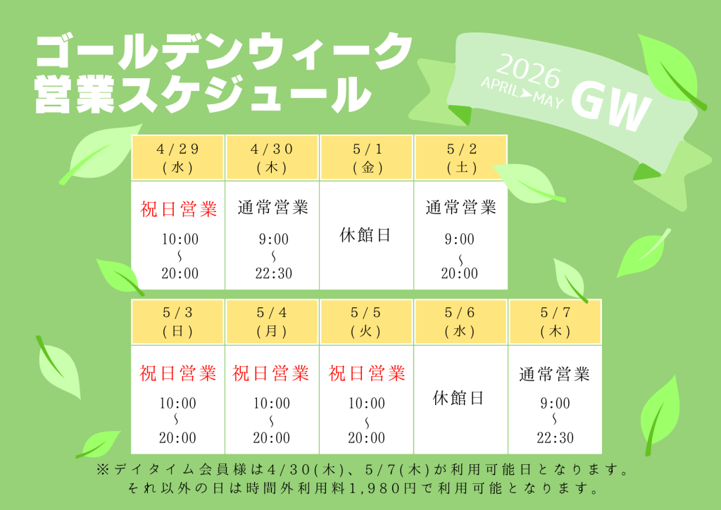 2026年ゴールデンウィーク営業スケジュールについて