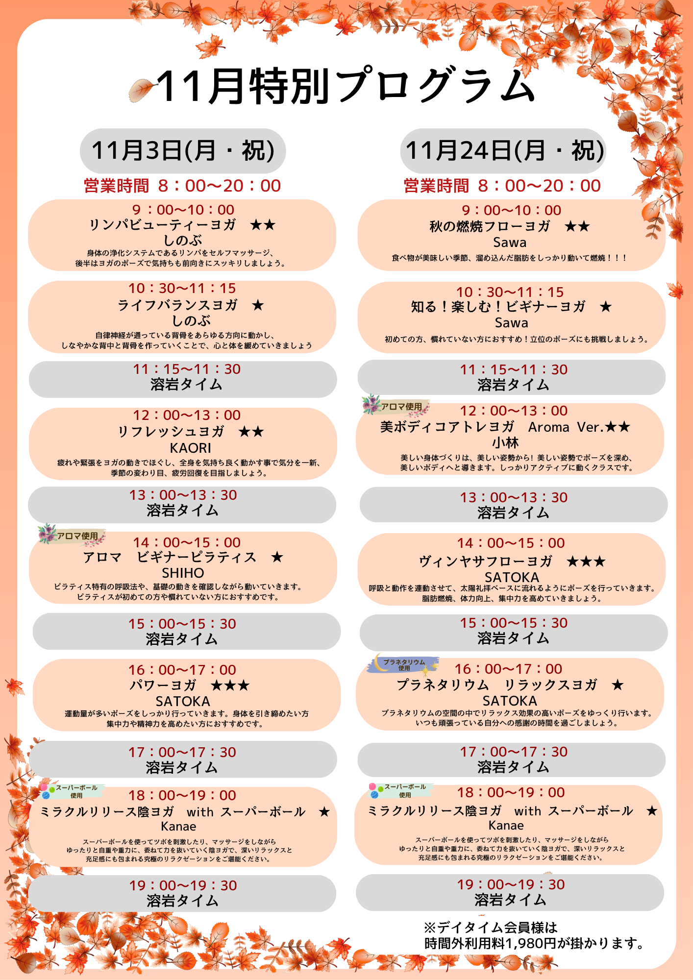 ホットヨガによる血液やリンパの流れを促進する効果に加え、ホルモンバランスの安定や美肌効果、たるみ解消など、さまざまな角度からのボディケアを目的としたプログラムです。難度は低めに設定していますので、初心者でも安心して受講することができます。
