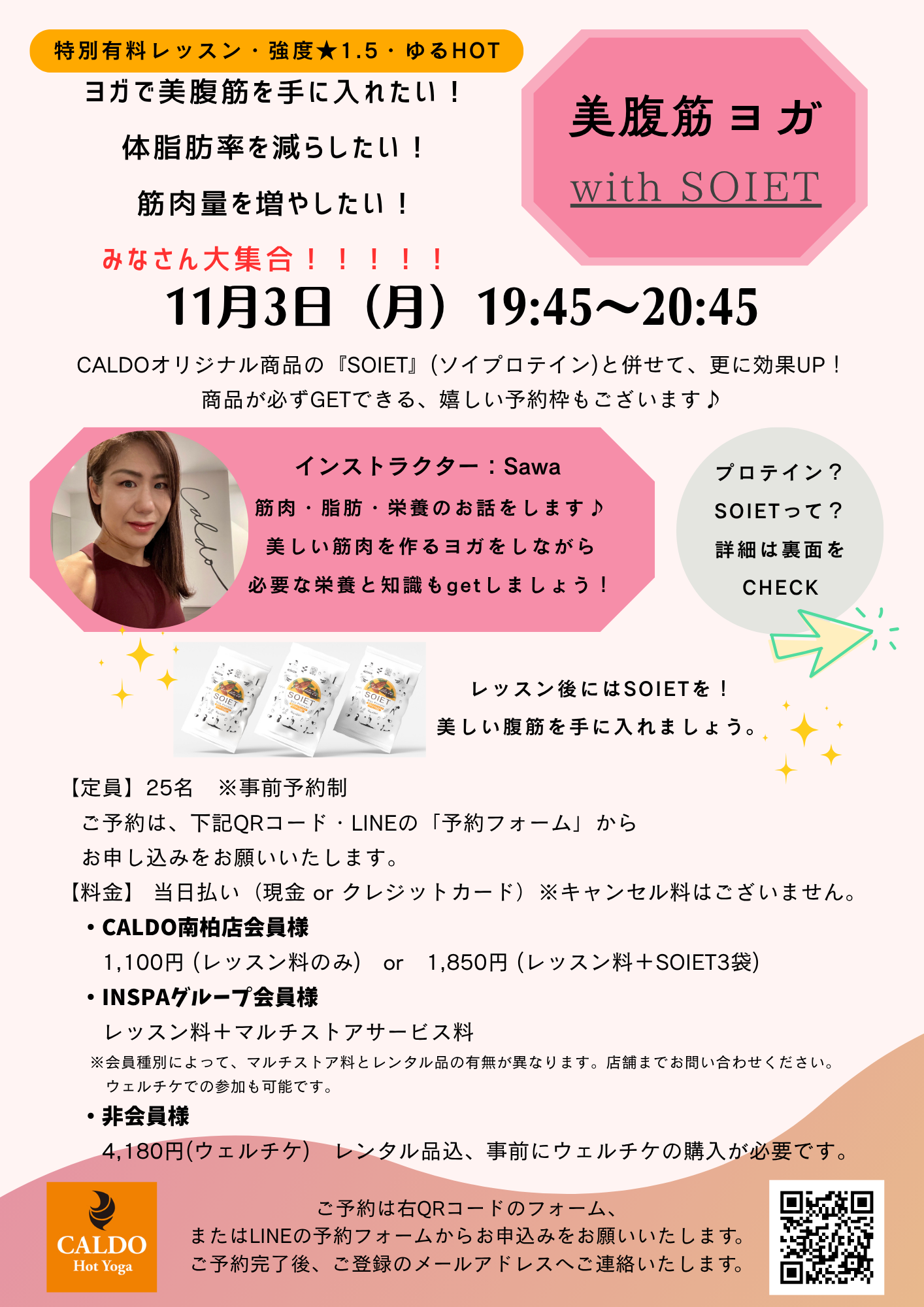 ストレッチで身体をほぐした後、バランスポーズや体幹を鍛えるエクササイズで筋肉量を増やし、基礎代謝をあげていくクラスです。 初めての方でもお気軽に参加できます。担当インストラクターが丁寧に案内してくれますのでご安心ください。
