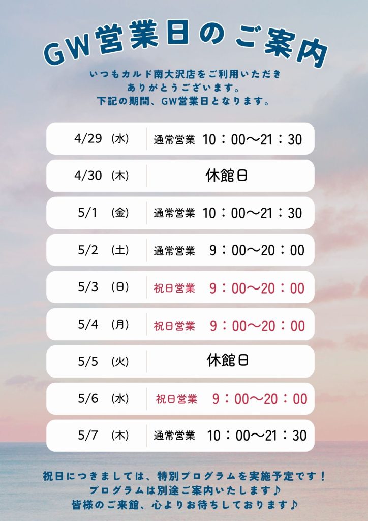 GW営業日のご案内