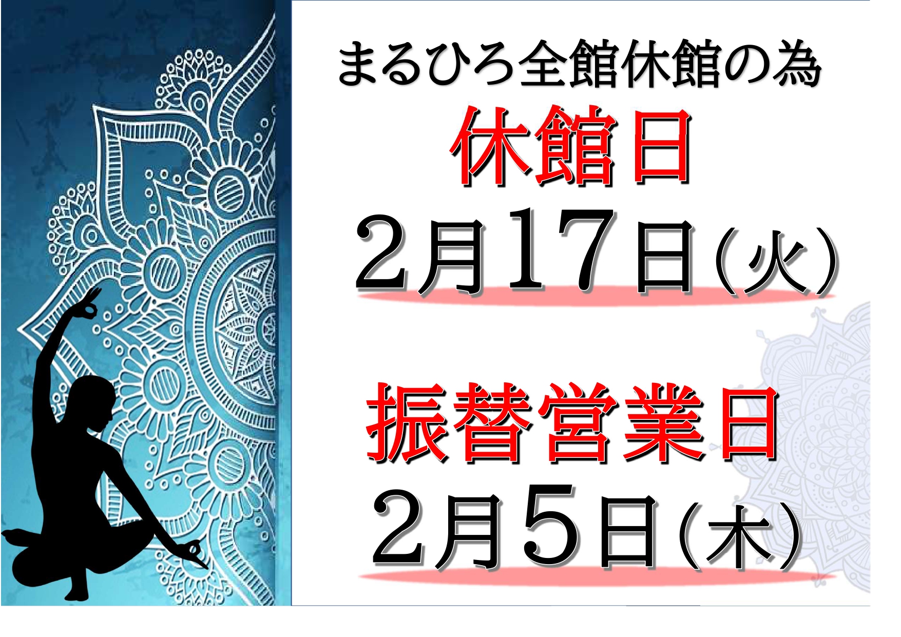 臨時休館ならびに振替営業のお知らせ