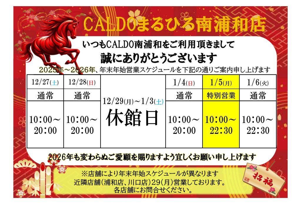いつもCALDOまるひろ南浦和店をご利用いただきまして、誠にありがとうございます。