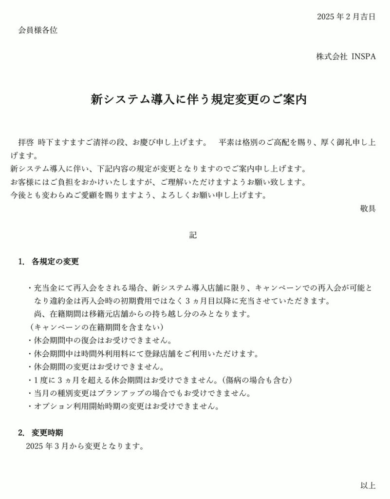新システム導入に伴う規定変更のご案内