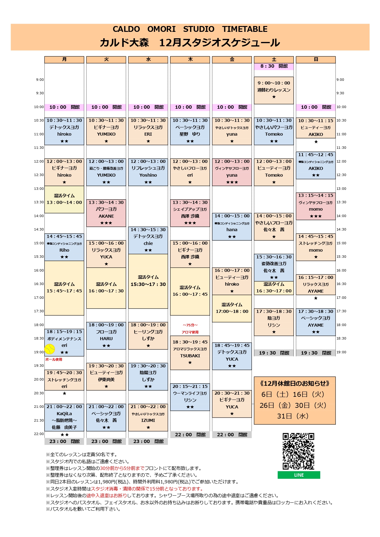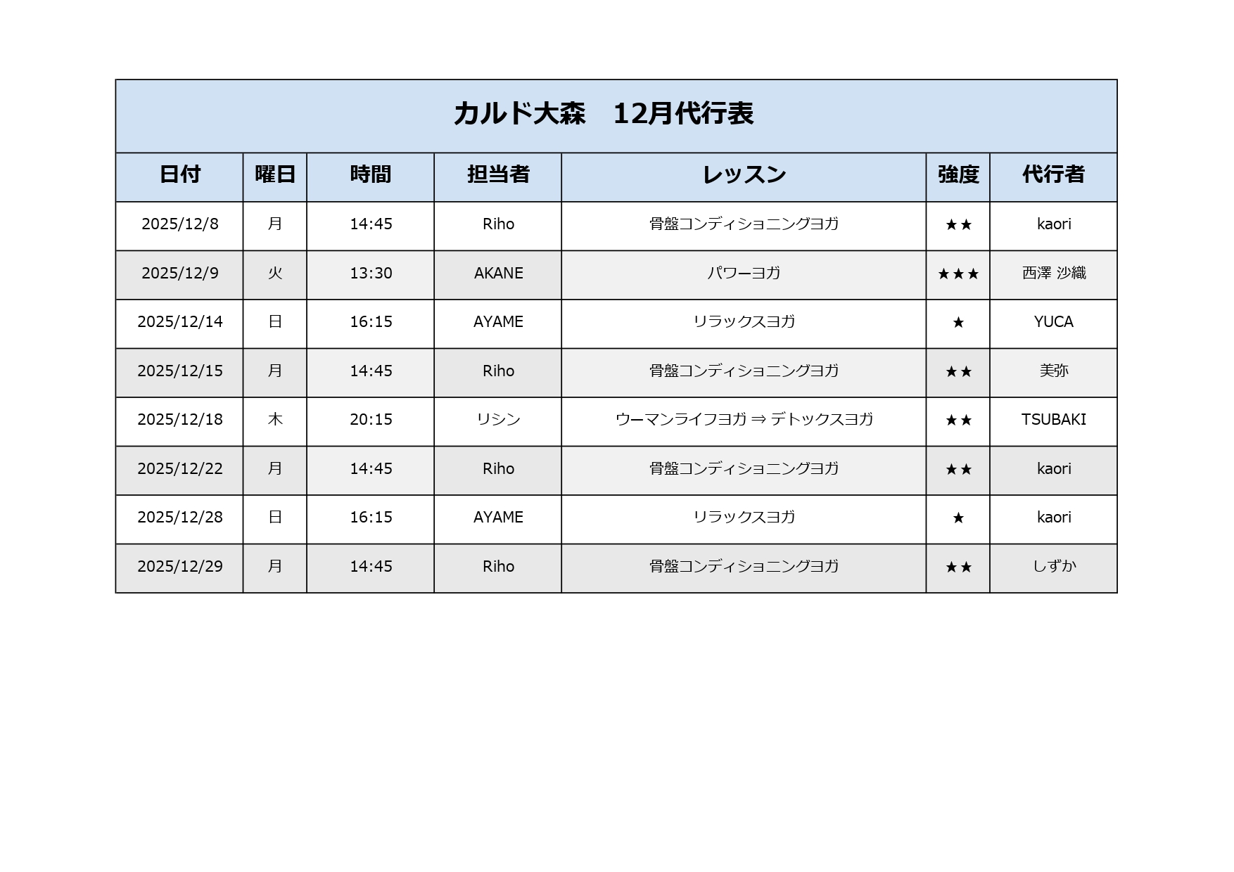 強度★~★★★のレッスンを週替わりで行います♪