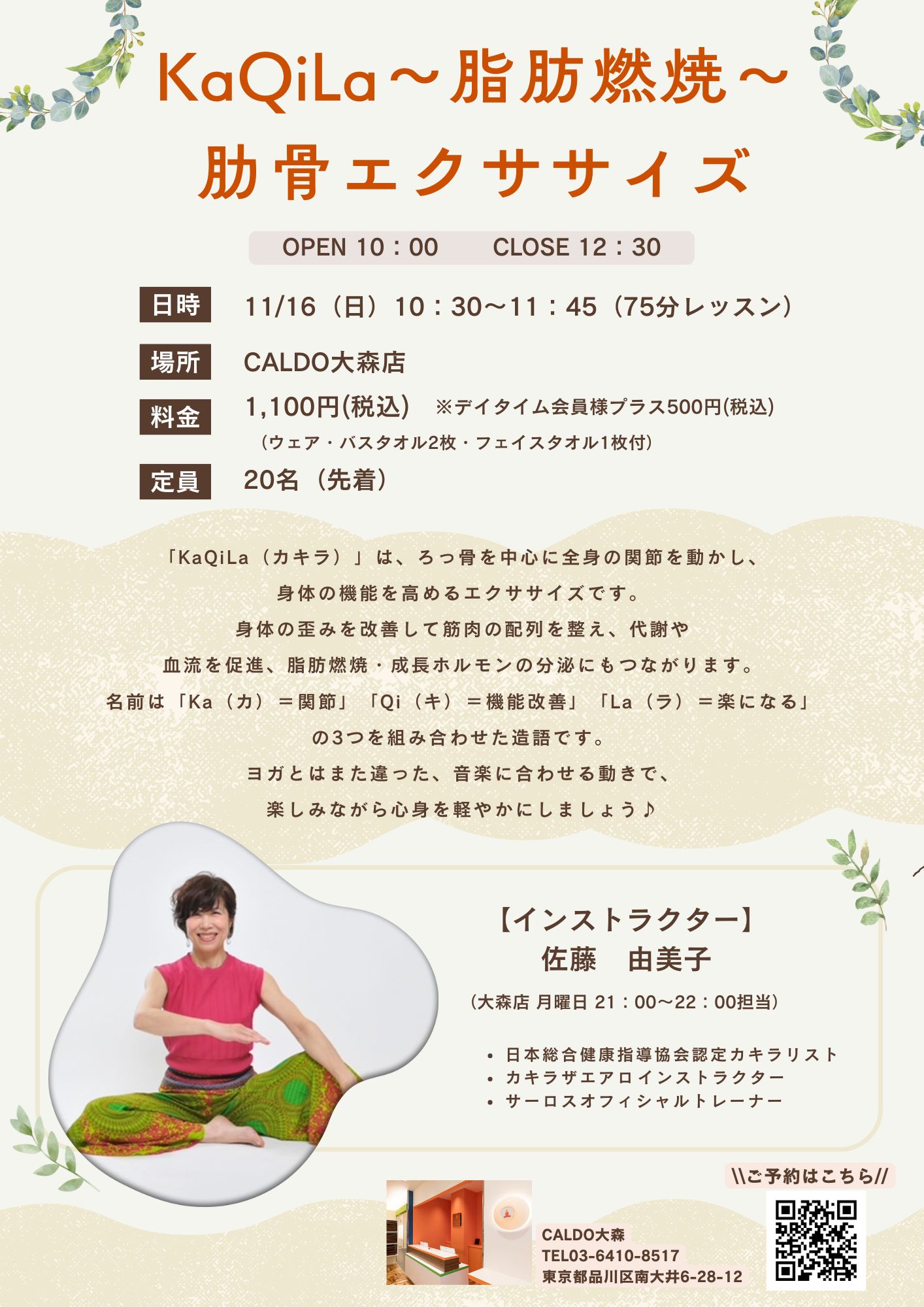 バランスの良いボディラインづくりに効果的なヨガポーズを行っていく、カルドの中でも比較的アクティブなプログラムです。 体のゆがみを取り除き、全身を引き締めてメリハリのあるボディスタイルを作っていきます。