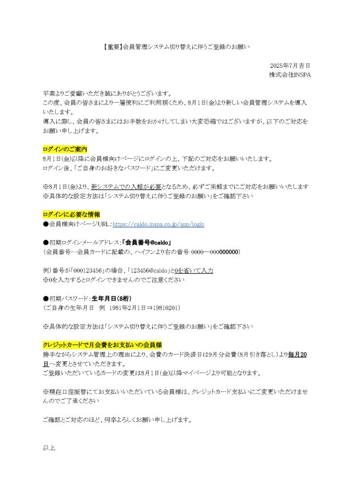 【重要】会員管理システム切り替えに伴うご登録のお願い
